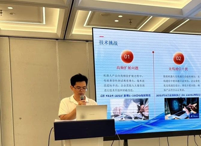 威凯检测技术有限公司广州 EMC 试验室副主任陈钧分享《CISPR 14 - 1 中服务机器人相关的最新标准进展及检测案例分享》。