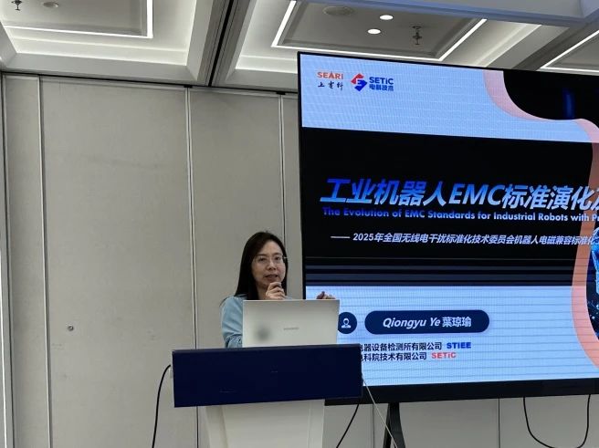 无干委B分会秘书长叶琼瑜分享《工业机器人电磁兼容标准演化及案例》。