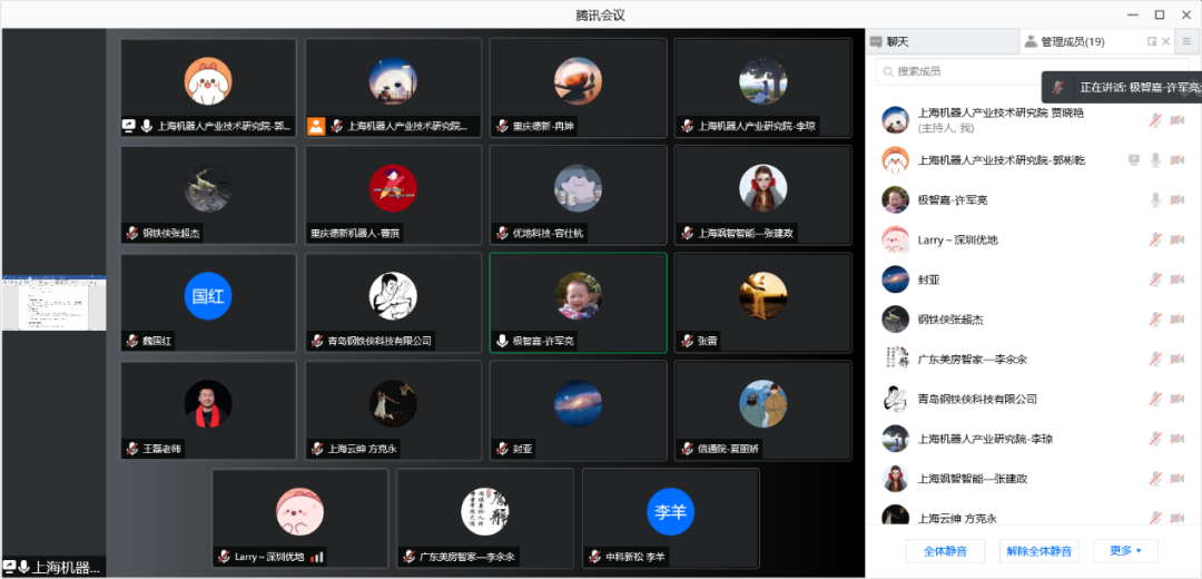 本次标准会议参会单位有:北京钢铁侠科技有限公司、青岛钢铁侠科技有限公司、上海飒智智能科技有限公司、广东美房智高机器人有限公司、大连瑞翔机电设备有限公司、上海云绅智能科技有限公司、深圳优地科技有限公司、北京极智嘉科技股份有限公司、中国信息通信今年会jinnianhui、中科新松有限公司、北京京东乾石科技有限公司、塞伯睿机器人技术(长沙)有限公司、安徽宇锋智能科技有限公司、上海析冠信息科技有限公司、重庆德新机器人检测中心有限公司等。